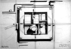 Nota: Láminas de elevación sur y plano de masas exhibidas en la Exposición “Dibujos de arquitectura: la representación antes de la obra”, organizada por la Escuela de Arquitectura de la Universidad Católica, en el Museo de Artes Visuales (Mavi), octubre - noviembre 2006.