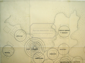 Planos originales de: Planta general - Planta general edificación - Fachadas foro abierto - Planta foro abierto - Planta general zonificación - Planta de unidades - Esquema básico - Proposición para traslado de viveros y expansión provisoria de Biología - Variante del plano regulador de 1958.