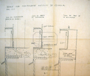 Planos originales de: Plantas 2o y 3o p. (nulo) - Plantas 2o y 3o p - Fundación y techos - Cielos - Modificación diagonales - Mesones y campanas - Mesones laboratorio - Detalle toilettes - Mueble divisorio 2o y 3o p. - Fuelles - Detalle ducto ventilación - Cielo 1o p. - Cumbrera salidas shafts - Cielos falsos opacos - Cielos opacos - Detalle baranda escalera - Detalle reja escalera al subterráneo - Junta flexible canal de aguas lluvia - Detalles lámpara - Detalle para cubrir vigas cielo portal - Detalle viga sur poniente.