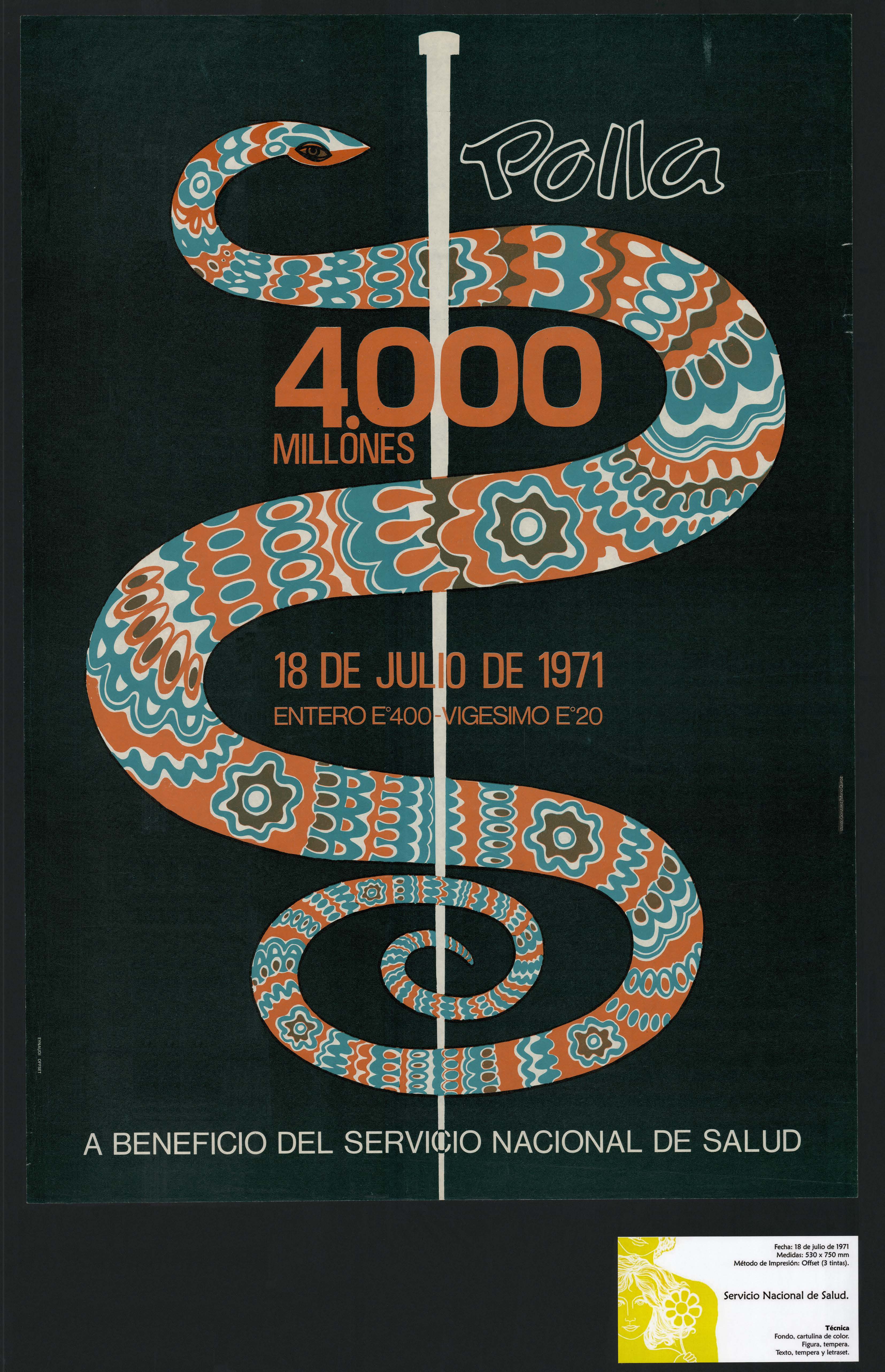 Texto: Polla 4.000 millones. 18 de julio de 1971. Entero E° 400 - vigésimo E° 20. A beneficio del Servicio Nacional de Salud.