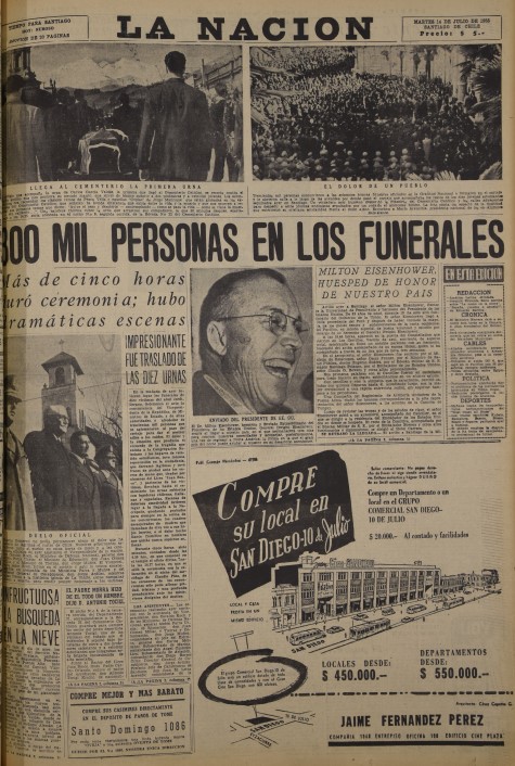 (1953-07-03)Prensa anuncia discurso de Presidente Ibáñez. Pág 1: Vibrante llamado al país hizo el General Ibáñez -