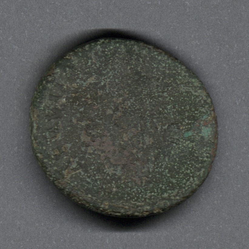 Moneda de bronce acuñada por el Senado para el emperador Nerva. Estado de conservación regular impide la identificación exacta. Anverso con el busto laureado del emperador Nerva a la derecha, leyenda parcialmente visible "IMP NERVA CAES AVG - PM TR P (...)". Reverso con la diosa Aequitas de pie a la izquierda, sosteniendo una cornucopia; leyenda parcialmente visible "AEQVITAS (....)" y "S/C" a cada lado. Fabricada por acuñación a martillo en la ceca de Roma. Peso de 10,7 gr.