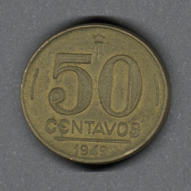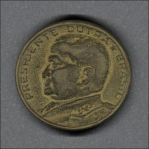 Monedas circulantes normales de Brasil. En anverso retrato de Eurico Gaspar Dutra, mirando hacia la izquierda. En reverso denominación sobre la línea. Fecha abajo, estrella arriba.