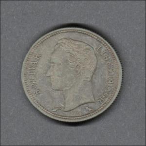 Monedas circulantes normales de Venezuela. En anverso escudo de armas con leyenda encima. Valor, fecha y ley en la parte inferior. En reverso busto a la izquierda, flanqueado por leyenda. Nombre del grabador en la base.