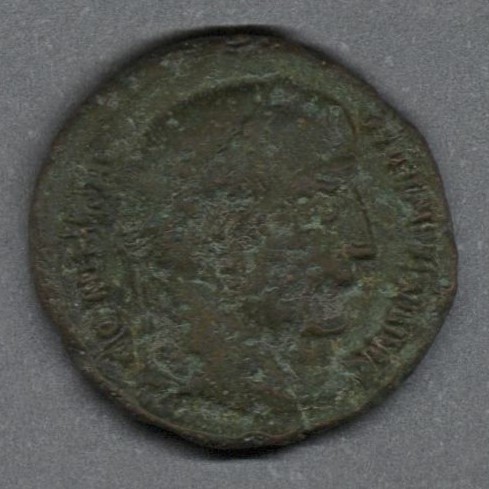 | Moneda de bronce acuñada en la ceca de Tesalónica, actual Salónica en Grecia |