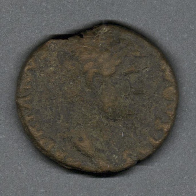 Moneda acuñada por el emperador Adriano, mediante aprobación del Senado. Estado de conservación regular: el cospel podría haber sido recortado (clipped) y tiene una muesca. Anverso con el busto laureado del emperador Adriano mirando a la derecha y leyenda recortada, pero legible "HADRIANVS AVGVSTVS". Reverso con la diosa Salus de pie, leyenda "COS III" y "S C" en el campo. Fabricada por acuñación a martillo, peso de 5,1 gr. El gramaje es inferior al esperado en este tipo, pero el diseño no coincide con los Semis de Adriano y el estado de conservación puede expliar la diferencia con el peso esperado.