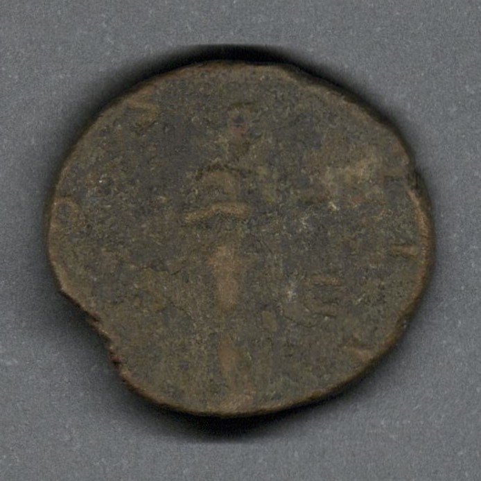 | Moneda de oricalco acuñada en la ceca de Roma |