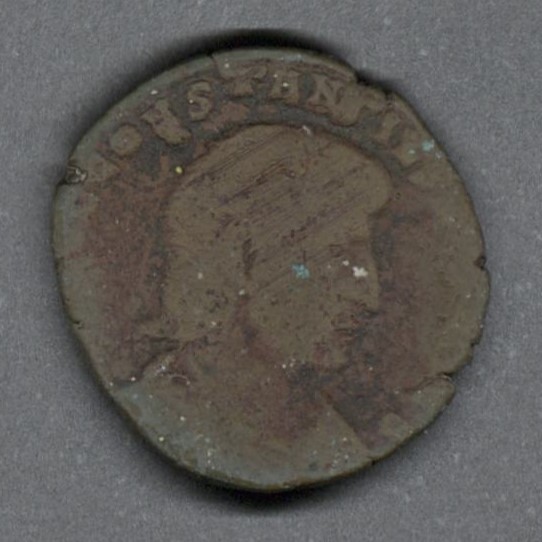 | Moneda de bronce acuñada en la ceca de Constantinopla, actual Estambul en Turquía |