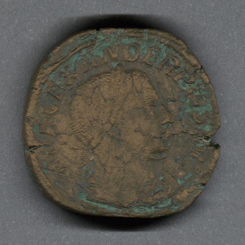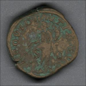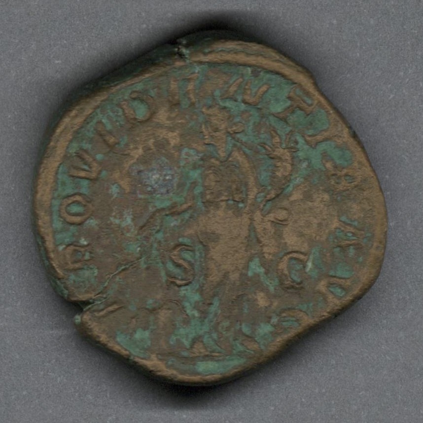 Moneda acuñada por el emperador Alejandro Severo, mediante aprobación del Senado. Anverso con el busto laureado del emperador Alejandro Severo drapeado sobre la coraza y mirando a la derecha, leyenda "IMP ALEXANDER PIVS AVG" y borde de puntos. Reverso con la diosa Providenrtia drapeada de pie mirando a la izquierda, sosteniendo una cornucopia en el brazo izquierdo y dos espigas de grano con la mano derecha, sobre un modio en el piso, leyenda "PROVIDENTIA AVG", "S C" en el campo a cada lado y borde de puntos. Fabricada por acuñación a martillo, peso 18,9 gr.