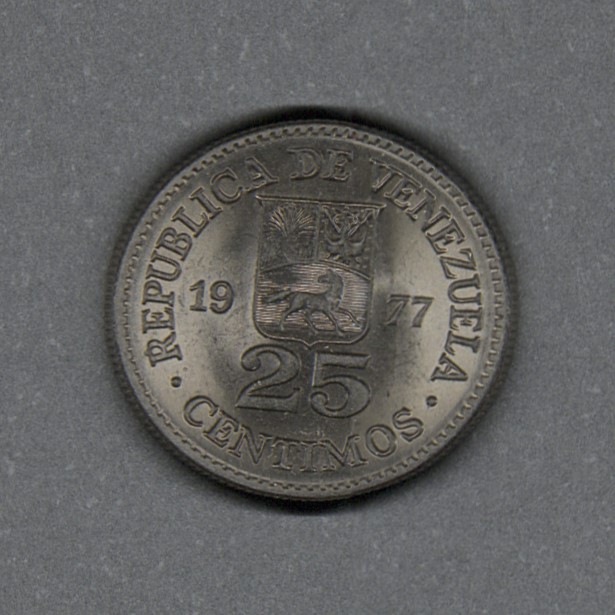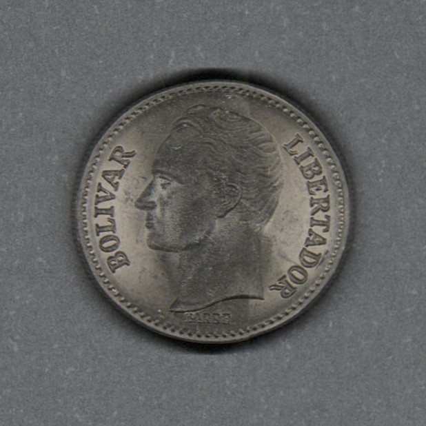 Monedas circulantes normales de Venezuela. En anverso escudo flanqueado por la fecha. Con leyenda arriba y valor abajo. En reverso retrato de Simón Bolívar, flanqueado por leyenda. Nombre del grabador en la base.