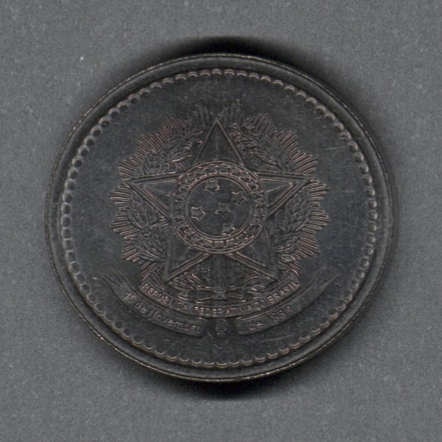 | Moneda de acero inoxidable. Casa da Moeda do Brasil, Rio de Janeiro, Brasil (1694-presente). |