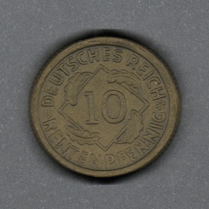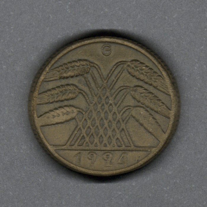 Moneda circulante normal de Alemania. En anverso presenta valor nominal en un cuadrado con 4 hojas de roble. Al reverso, espigas de trigo dibujando una pirámide. Ambas caras fueron grabadas por Waldemar Raemisch, y el diseño del canto es juncoso.