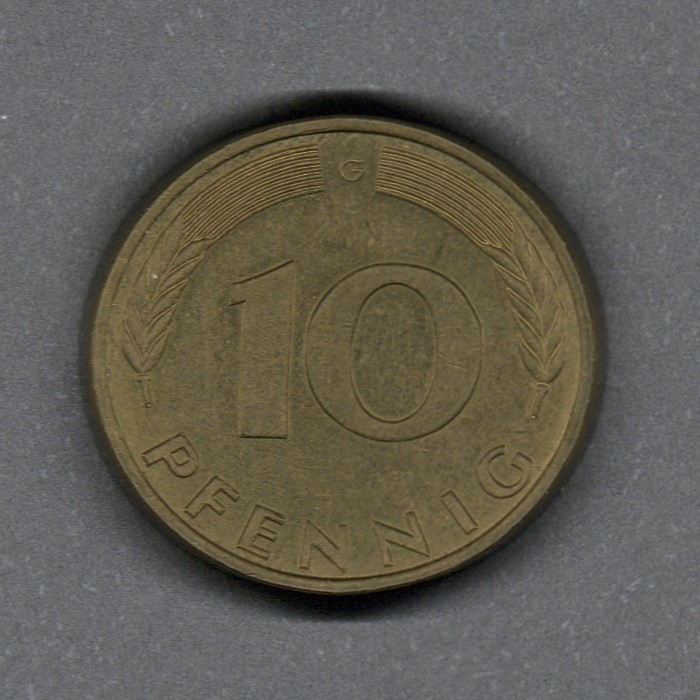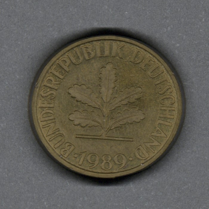 Moneda circulante normal de Alemania. En anverso presenta un plantón de roble sobre la fecha. Al reverso, la marca de ceca entre dos espigas de centeno sobre la denominación. El grabador de ambas caras fue Adolf Jäger. El diseño del canto es liso, con el chapado de latón parcialmente estirado sobre un núcleo de acero.