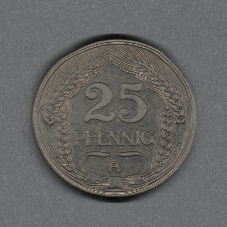 Moneda circulante normal de Alemania. En anverso presenta águila imperial alemana, con pequeño escudo (2º tipo), saliendo de un círculo. Letras y fecha alrededor del borde. El grabador encargado fue Paul Sturm. Al reverso, denominación central en grande rodeada de una corona de trigo. Marca de ceca debajo. Su grabador fue Otto Schultz. El diseño del canto es llano.