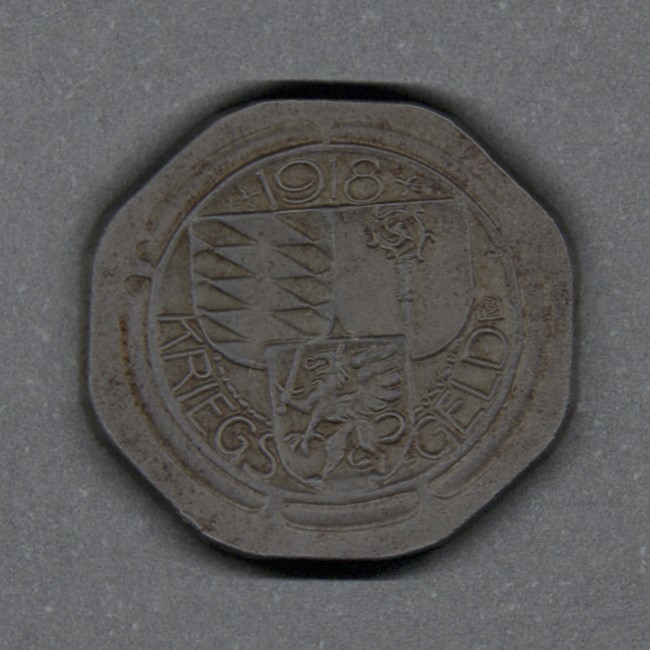 | Composición: Hierro. Casa de moneda: Württembergisches Münzamt, Stuttgart, Alemania (1916-1918). Forma: Octogonal |