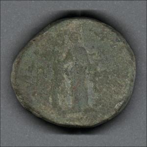 Moneda acuñada, mediante aprobación del Senado, por el emperador Marco Aurelio en honor a su hija, Lucila, esposa del coemperador Lucio Vero. Anverso con el busto de la emperatriz Lucila mirando a la derecha, con el pelo recogido en un moño bajo detrás de la cabeza y drapeada, leyenda parcialmente visible "LVCILLA AVGVSTA" y borde de puntos. Reverso con la diosa Pietas drapeada de pie a la izquierda, junto a un altar en el campo izquierdo; leyenda desgastada. Fabricada por acuñación a martillo, peso de 19,4 gr.