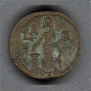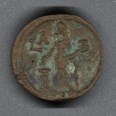 | Moneda de bronce acuñada en la ceca de Alejandría, Egipto |