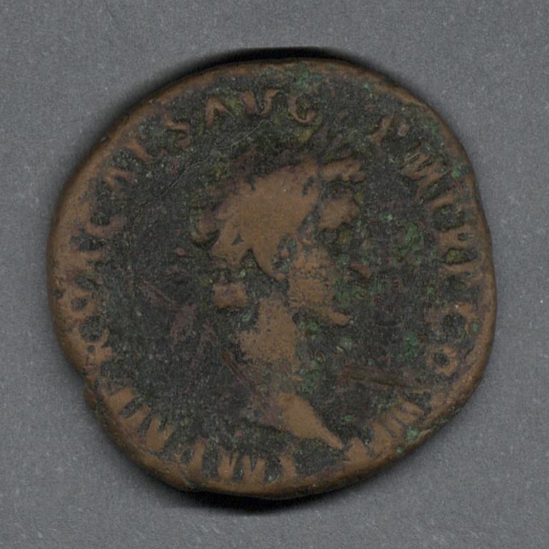 Moneda acuñada por el emperador Nerva, mediante aprobación del Senado. Anverso con el busto laureado del emperador Nerva mirando a la derecha, leyenda "IMP NERVA CAES AVG - P M TR P COS III P P" y borde de puntos. Reverso con la diosa Fortuna drapeada de pie a la izquierda, sosteniendo un timón con la mano derecha y una cornucopia en el brazo izquierdo, leyenda "FORTVNA - AVGVST", en el campo "S C" y borde de puntos. Fabricada por acuñación a martillo, peso de 8,9 gr.