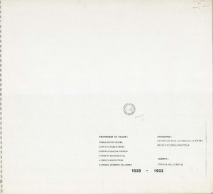 | v.1 Carpeta anillada. Las fotocopias corresponden a planos y dibujos que pertenecen a otras carpetas. Se encuentran numeradas por el reverso con lápiz mina. Formato referencial de una lámina desplegada alto 45 x ancho 103 cms. Compuesta por las fotocopias de planos, perspectivas y dibujos. Algunas, han sido coloreadas manualmente en algunos sectores. Las hojas, perforadas al lado izquierdo, tienen dimensiones variables. Las de mayor formato, han sido plegadas. La cubierta de la obra es naranja y las perforaciones, corresponden a un anillado que fue removido. v.2 v.2 Carpeta anillada. Dibujos en diversos soportes. Tiene timbre institucional. Firma del autor. Anotaciones en el reverso de algunas láminas que indican nombre de la imagen en el anverso o si fue copiada. Formato referencial de una lámina desplegada alto 58 x ancho 190 cms. Compuesta por dibujos originales con técnicas diversas (carboncillo y lápiz) de dimensiones variables y perforadas al lado izquierdo. Algunas láminas, tienen plastificado por el anverso. La cubierta de la obra es marrón claro y las perforaciones, corresponden a un anillado que fue removido. v.3 Carpeta anillada. Láminas plastificadas. Tiene timbre institucional. Firma del autor. Anotaciones en el reverso de algunas láminas que indican nombre de la imagen en el anverso o si fue copiada. Formato referencial de una lámina desplegada alto 58 x ancho 190 cms. Obra de formato rectangular. Dimensiones alto 58 x ancho 63.5 cms. Dibujos originales con técnicas diversas de dimensiones variables y perforadas al lado izquierdo. Algunas láminas, tienen plastificado por el anverso. La cubierta de la obra es marrón claro y las perforaciones, corresponden a un anillado que fue removido. |