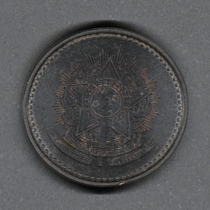 | Moneda de acero inoxidable. Casa da Moeda do Brasil, Rio de Janeiro, Brasil (1694-presente). |