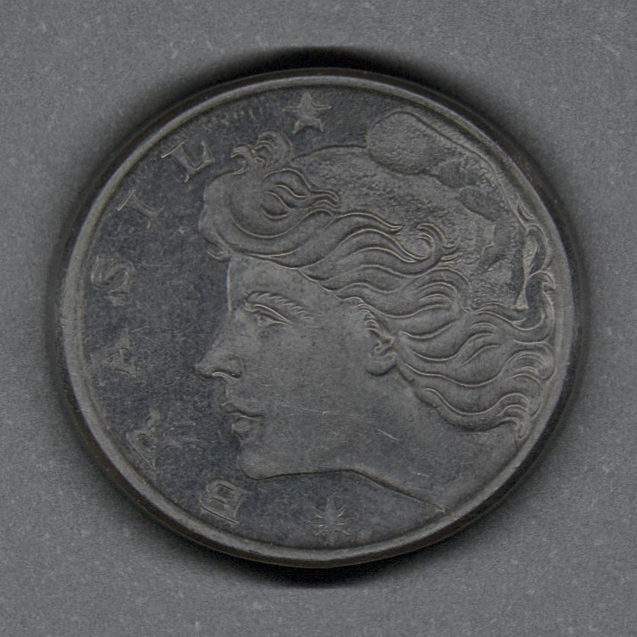 | Moneda de cuproníquel. Casa da Moeda do Brasil, Rio de Janeiro, Brasil (1694-presente). |