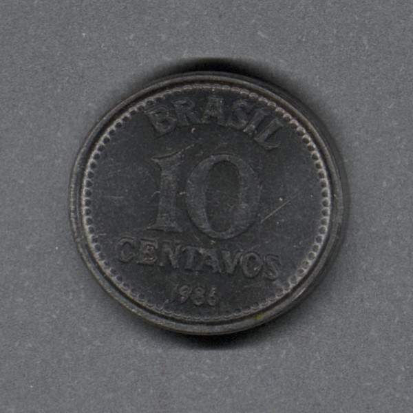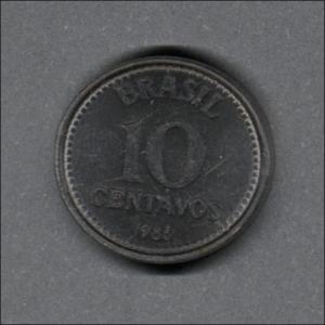 Monedas circulantes normales de Brasil. En anverso emblema del Estado, estrella con círculo dentro. En reverso denominación de la moneda y fecha.