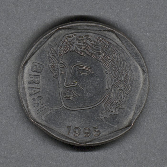| Moneda de acero inoxidable. Casa da Moeda do Brasil, Rio de Janeiro, Brasil (1694-presente). |