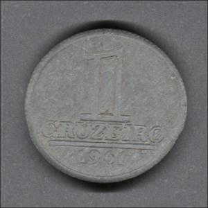 Monedas circulantes normales de Brasil. En anverso emblema del Estado, estrella con círculo dentro. En reverso denominación de la moneda encima de la línea, fecha debajo.