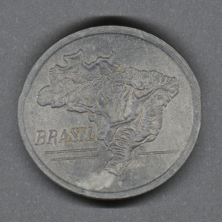 | Moneda de aluminio. Casa da Moeda do Brasil, Rio de Janeiro, Brasil (1694-presente). |
