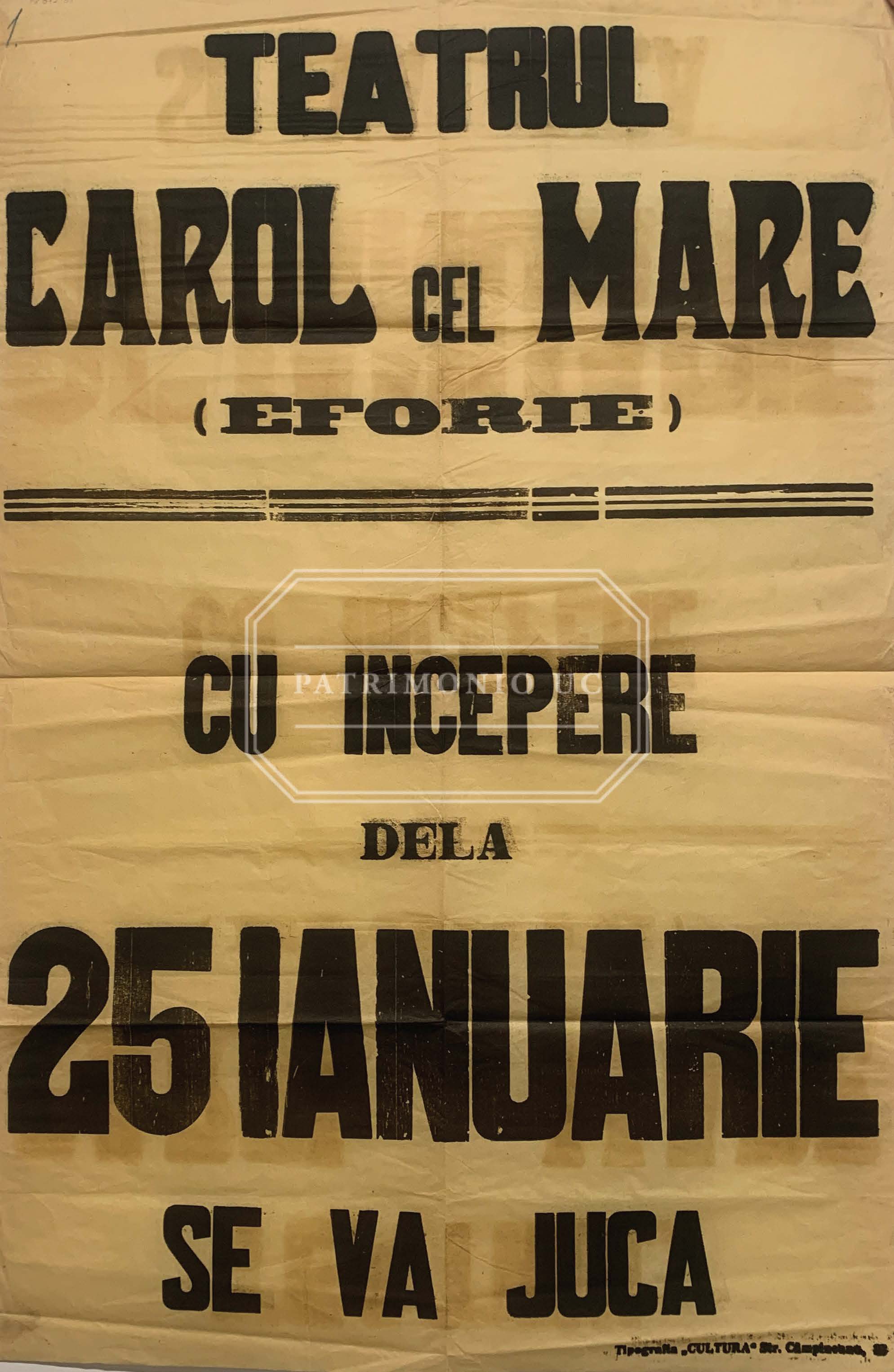 Afiche teatral del Teatrul Marioara Voiculescu (Palatul Cercul Militar) que anuncia la apertura de temporada con la obra “Peer Gynt”, poema dramático en cinco actos de Henrik Ibsen, con música de Edvard Grieg y traducción de Em. Cerbu. La dirección plástica estuvo a cargo del pintor Tr. Cornescu y la dirección de escena de Mime Mizu.