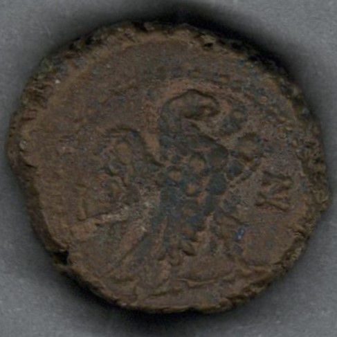 Moneda acuñada por el emperador Probo para la provincia de Egipto. Anverso con el busto laureado del emperador Probo llevando coraza y mirando a la derecha, leyenda "Α Κ Μ ΑΥΡ ΠΡΟΒΟϹ ϹΕΒ" y borde de puntos. Reverso con un águila a la derecha con las alas abiertas y llevando una guirnalda en la boca, leyenda "L Z" y borde de puntos. Canto irregular. Fabricada por acuñación a martillo, peso de 7,2 gr.