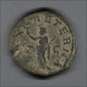 Moneda acuñada por el emperador Filipo I, mediante aprobación del Senado. Anverso con el busto laureado del emperador Filipo I, drapeado sobre la coraza y mirando a la derecha, leyenda "IMP PHILIPPVS AVG" y borde de puntos. Reverso con la diosa Pax drapeada de pie a la izquierda, sostieniendo una rama con la mano derecha y con la izquierda, un cetro; leyenda "PAX - AETERNA", en el campo "S C" y borde de puntos. Fabricada por acuñación a martillo, peso 16,8 gr.