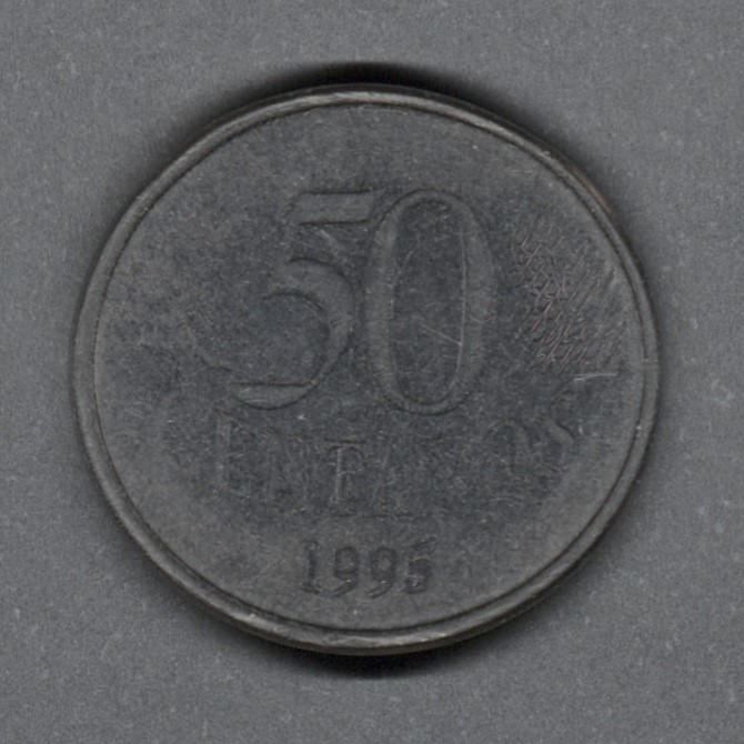 | Moneda de acero inoxidable. Casa da Moeda do Brasil, Rio de Janeiro, Brasil (1694-presente). |