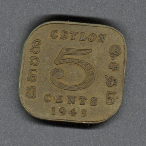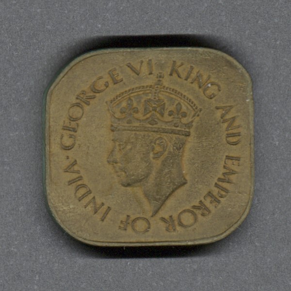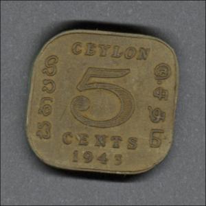 Monedas circulantes normales de Sri Lanka. En anverso retrato de George VI mirando a la izquierda. En reverso denominación y año de la moneda.