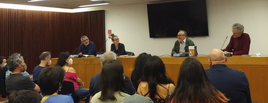 Presentación de la novela “Los asuntos del prójimo en el Centro Cultural Gabriela Mistral. 2021. De izquierda a derecha.