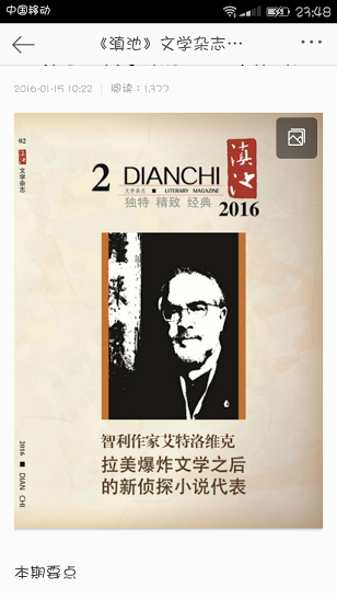 Díaz Eterovic en la portada de la revista china “Dianchi”. 2016.