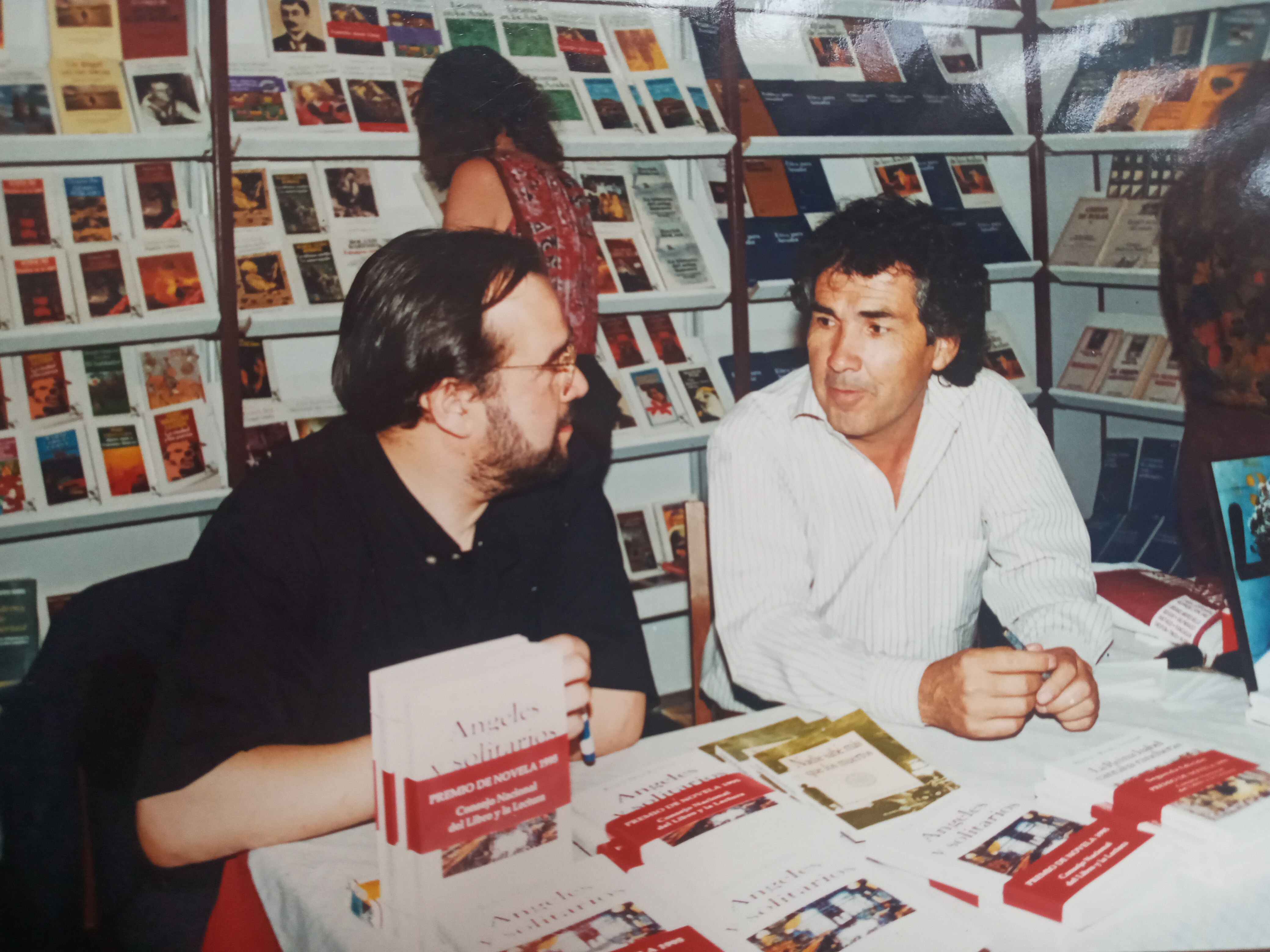 Díaz Eterovic con Hernán Rivera Letelier en la Feria del Libro de Santiago...