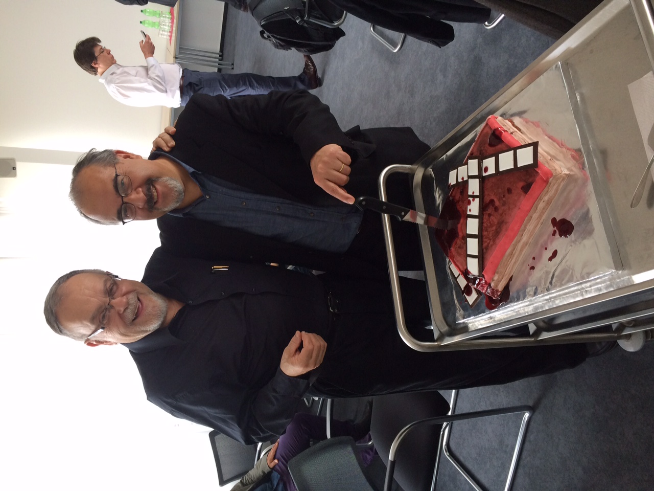 Díaz Eterovic con el escritor Mempo Giardinelli en el Encuentro de Narrativa Latinoamericana de Paderborn, Alemania..