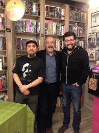 Díaz Eterovic con el guionista Carlos Reyes y el dibujante Gonzalo Martínez participantes en la realización de la novela gráfica “Heredia Detective”.