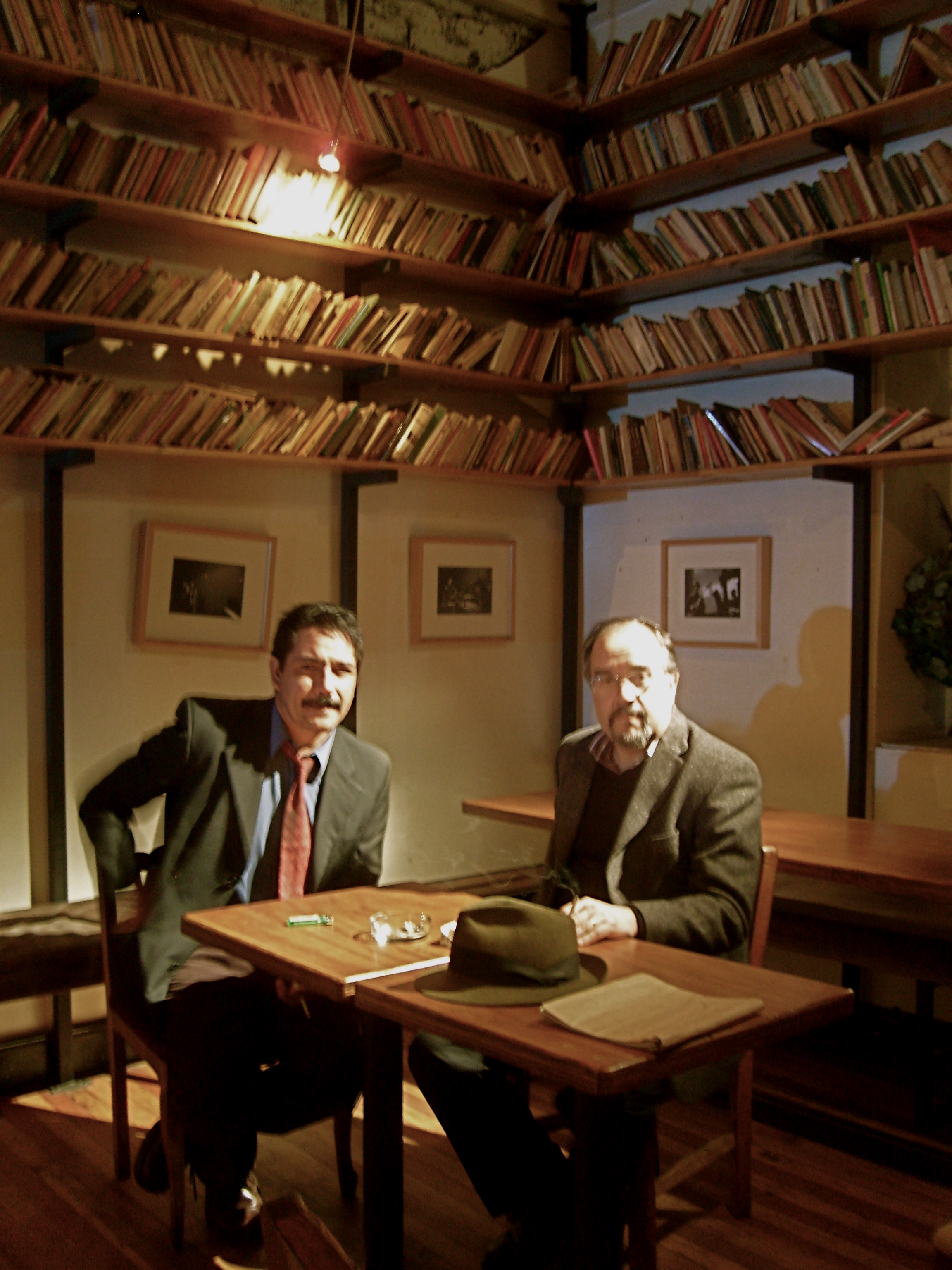 Díaz Eterovic con el actor Pablo Macaya durante la filmación del documental “El rostro oculto en las palabras” de Alexis Moreno..