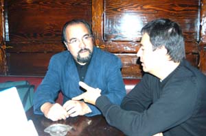 Díaz Eterovic con el actor Claudio Arredondo, protagonista de la serie de televisión “Heredia y Asociados”..