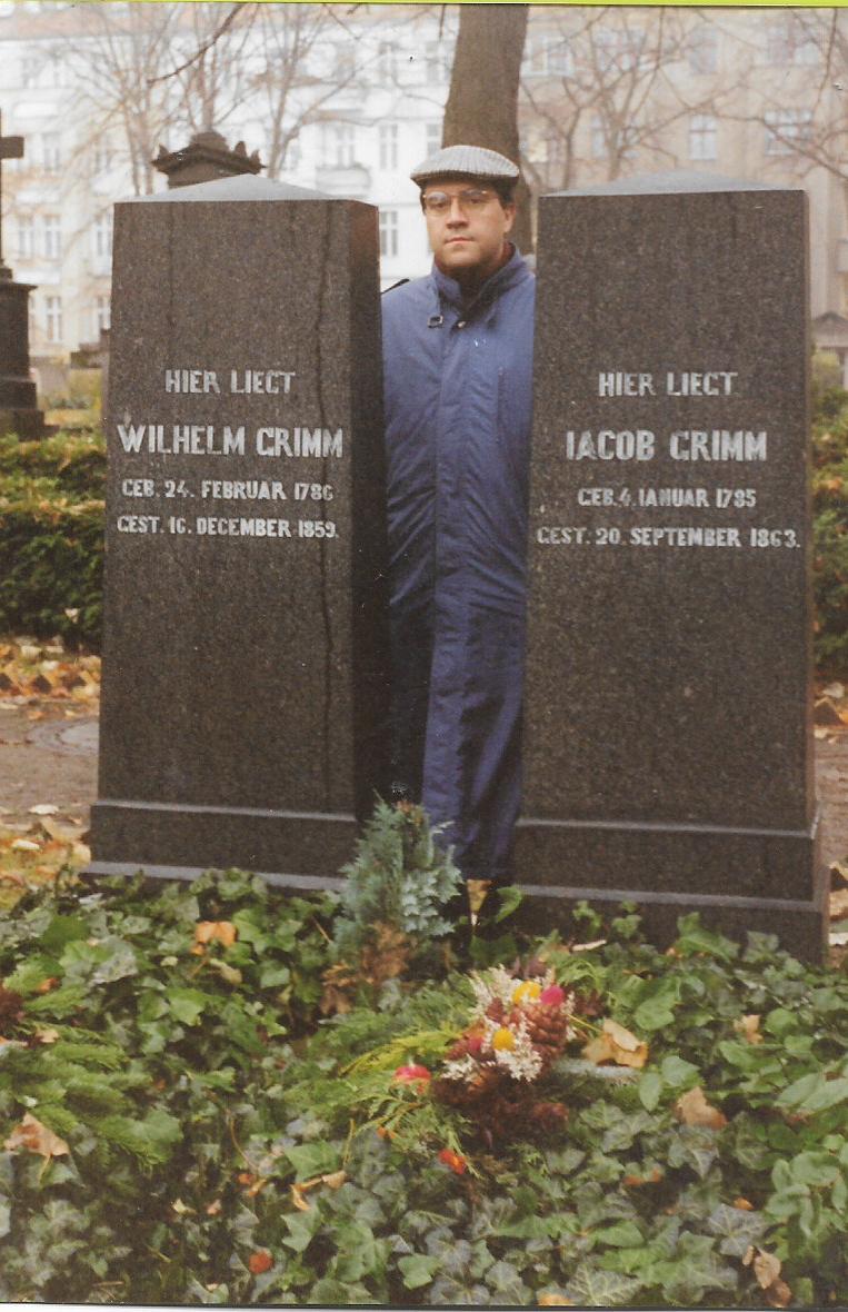Díaz Eterovic en la tumba de los Hermanos Grimm, Berlín, Alemania..