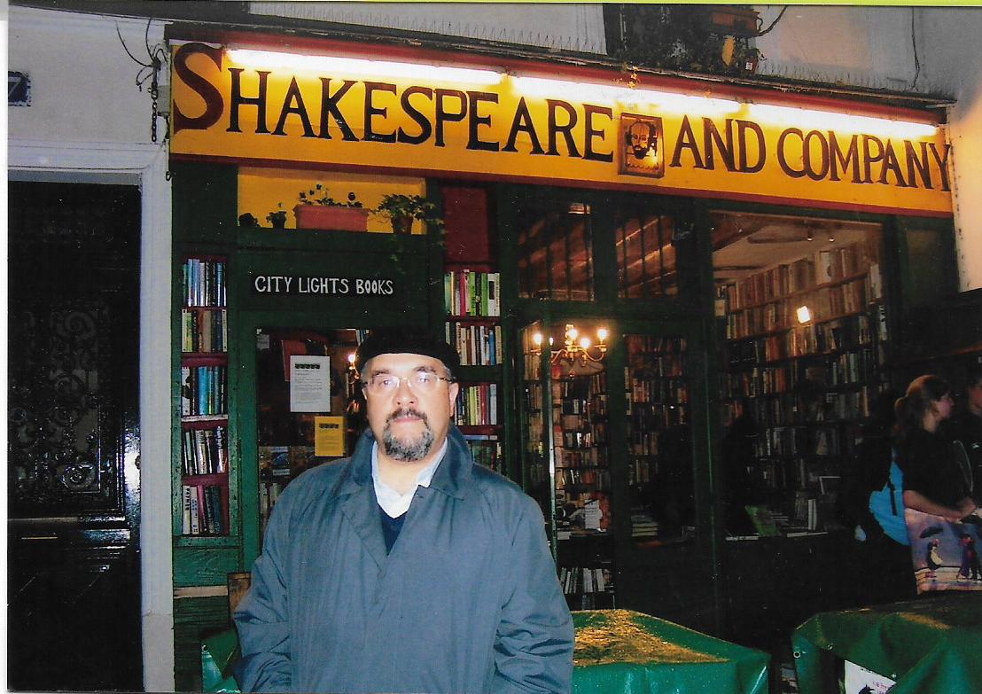 Díaz Eterovic en la librería Shakespeare y Compañía, en el Barrio Latino de París. Mítica librería frecuentada por Ernest Hemingway y James Joyce..