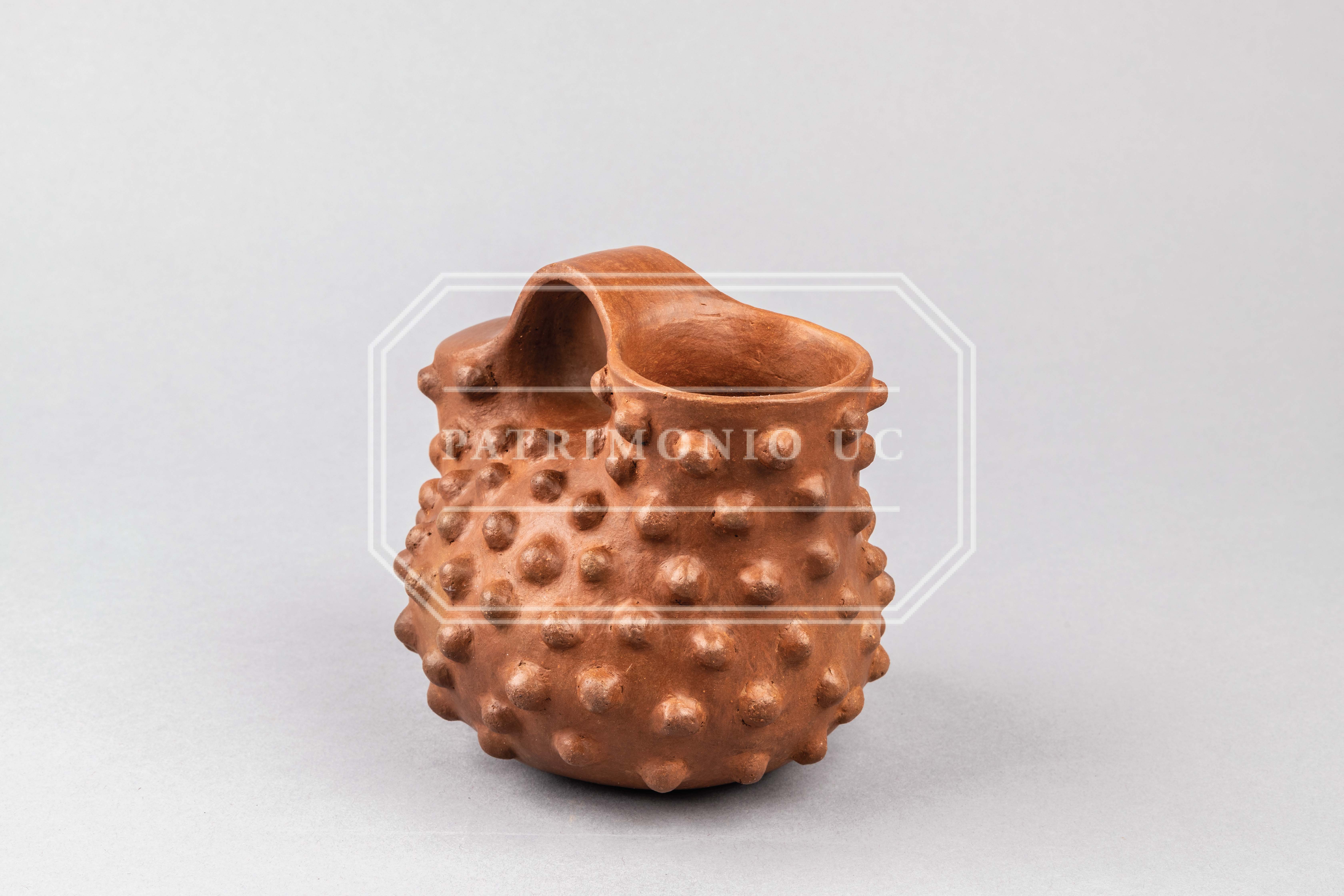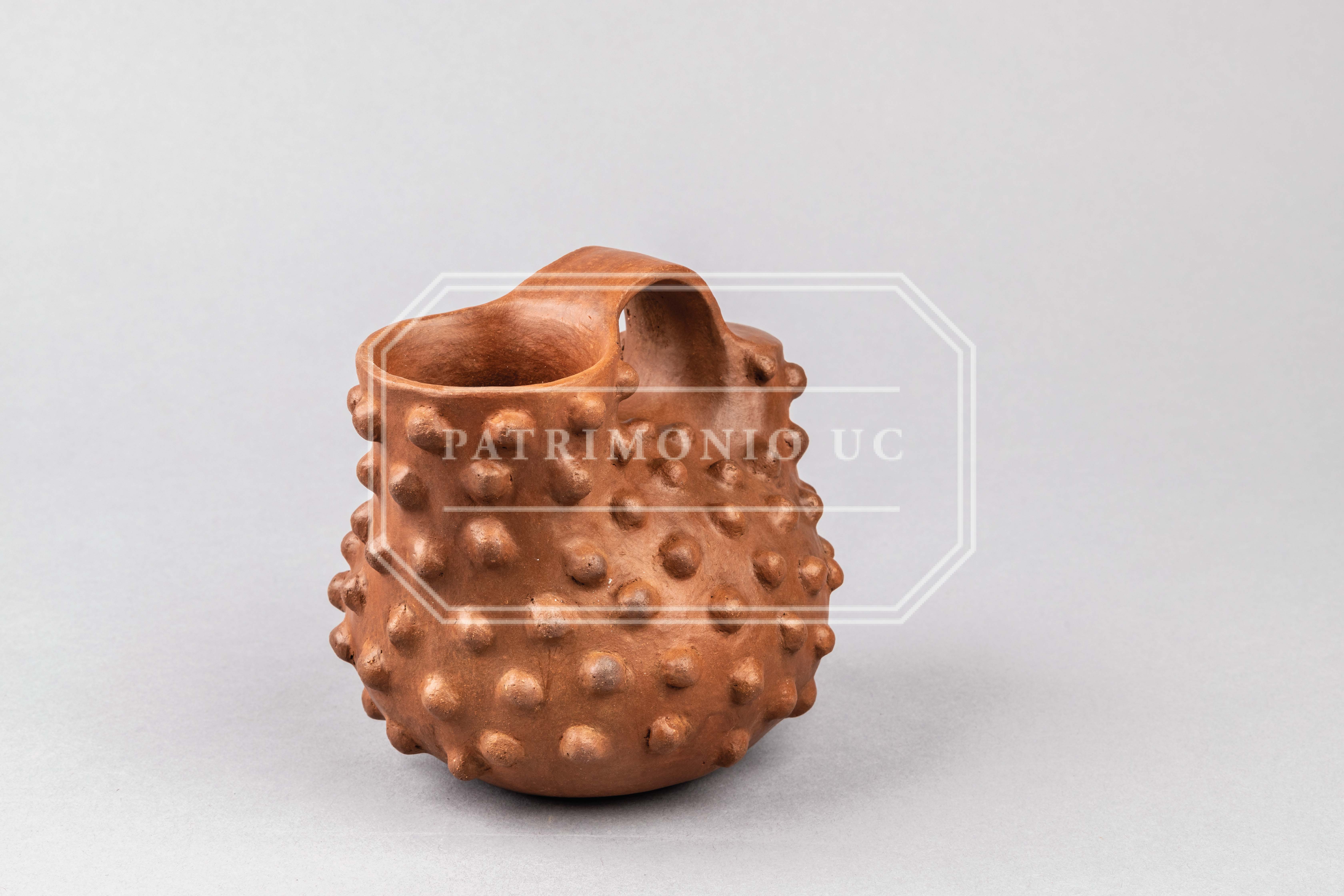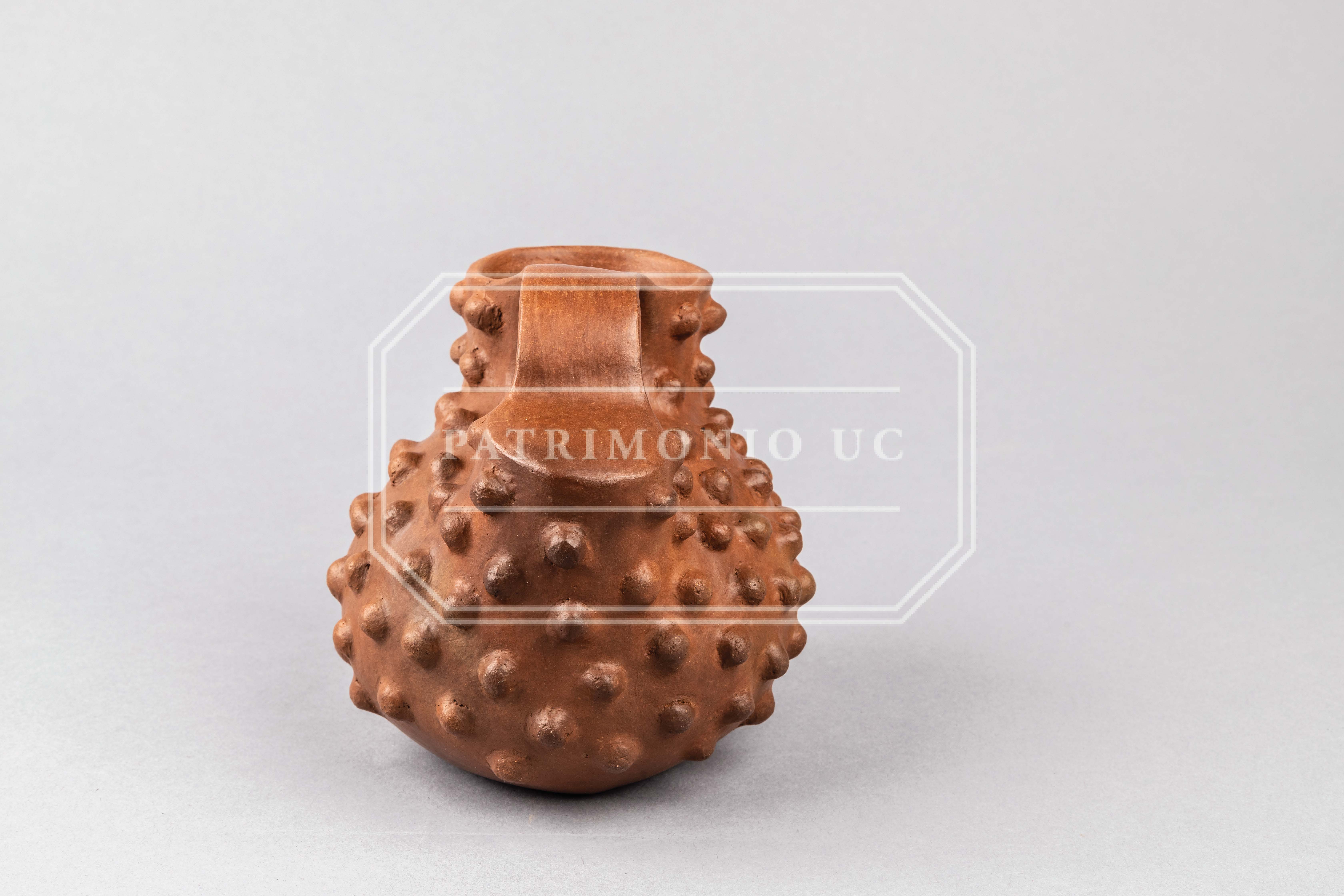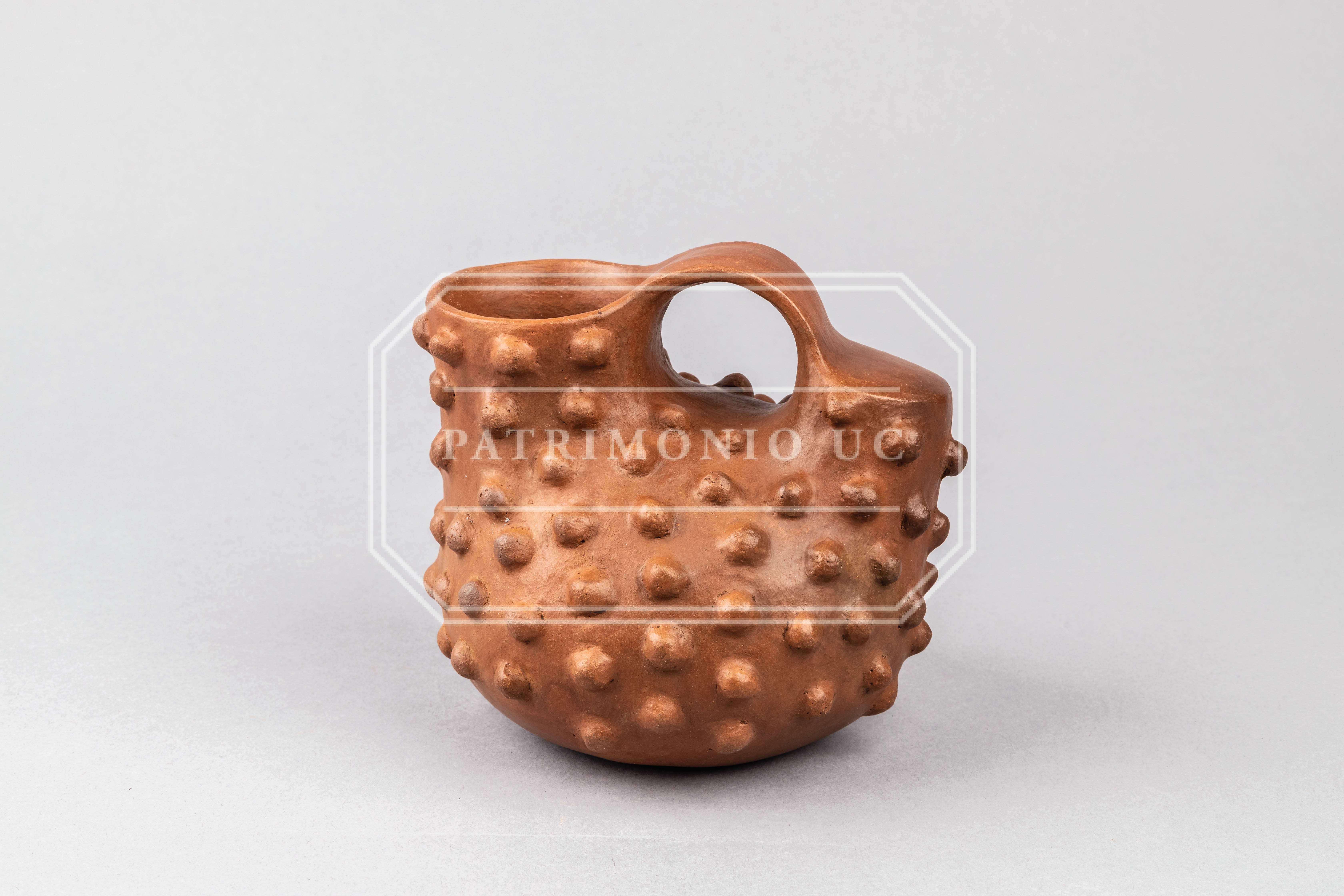 | dc.description.abstract | Jarro zoomorfo que evoca la forma de un Sapo de Bullock (Telmatobufo Bullocki). Su forma se asemeja a un cuerpo globular con dos cuellos levemente cilíndricos unidos por un asa puente de labio a labio. Uno de los cuellos es abierto y el otro está sellado por una pieza circular sutilmente cóncava. Es de cerámica, de color café rojizo y su superficie posee protuberancias modeladas dispuestas por todo el cuerpo de jarro. | |