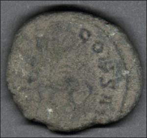 Moneda acuñada por el emperador Galieno durante su periodo de gobierno en solitario después de la muerte de su padre, el emperador Valeriano. Anverso con el busto radiado del emperador Galieno a la derecha, leyenda parcialmente visible "(GALLIE)NVS AVG" y borde de puntos. Reverso con un centauro a la izquierda, leyenda "(APOLLINI) - CONS A(VG)", exergo desgastado y borde de puntos. Fabricada por acuñación a martillo, peso de 2,5 gr.