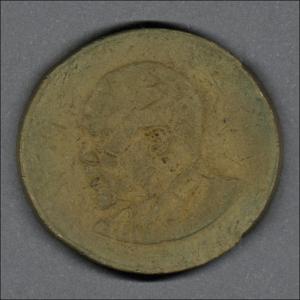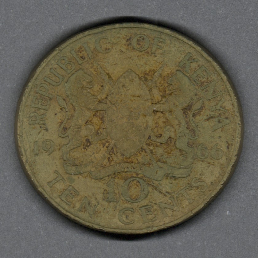 Monedas circulantes normales de Kenia. En anverso escudo de armas de Kenia dividiendo la fecha. En reverso retrato del presidente Mzee Jomo Kenyatta mirando hacia la izquierda.