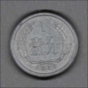 Monedas circulantes normales de China. En anverso emblema de China Tian'anmen, que significa Puerta de la Paz Celestial, 5 estrellas sobre ella. En reverso valor de la moneda y año.