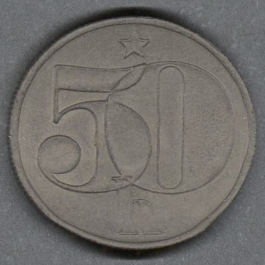 Moneda circulante normal de Mónaco. En anverso presenta escudo socialista, año de acuñación debajo. rodeado por la leyenda "ČESKOSLOVENSKÁ SOCIALISTICKÁ REPUBLIKA". Al reverso estrella sobre el valor, inicial del grabador a la derecha. El grabador de ambas caras fue František David. El diseño del canto es juncoso.