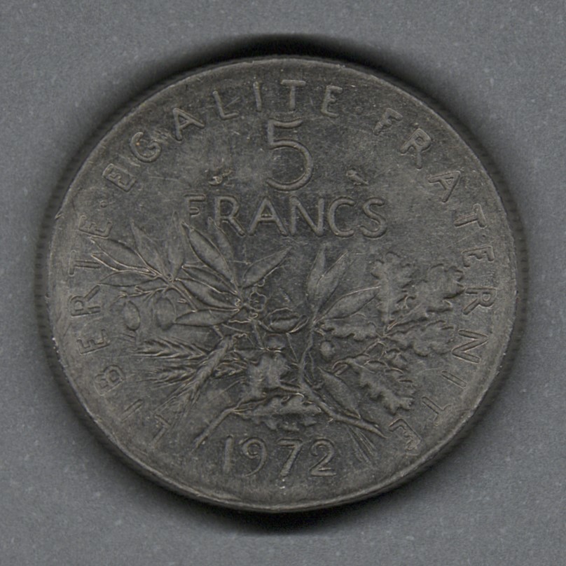 | Composición: Cuproníquel chapado en níquel. Casa de Moneda de París (Monnaie de Paris), París (y Pessac a partir de 1973), Francia (864-presente) |