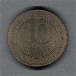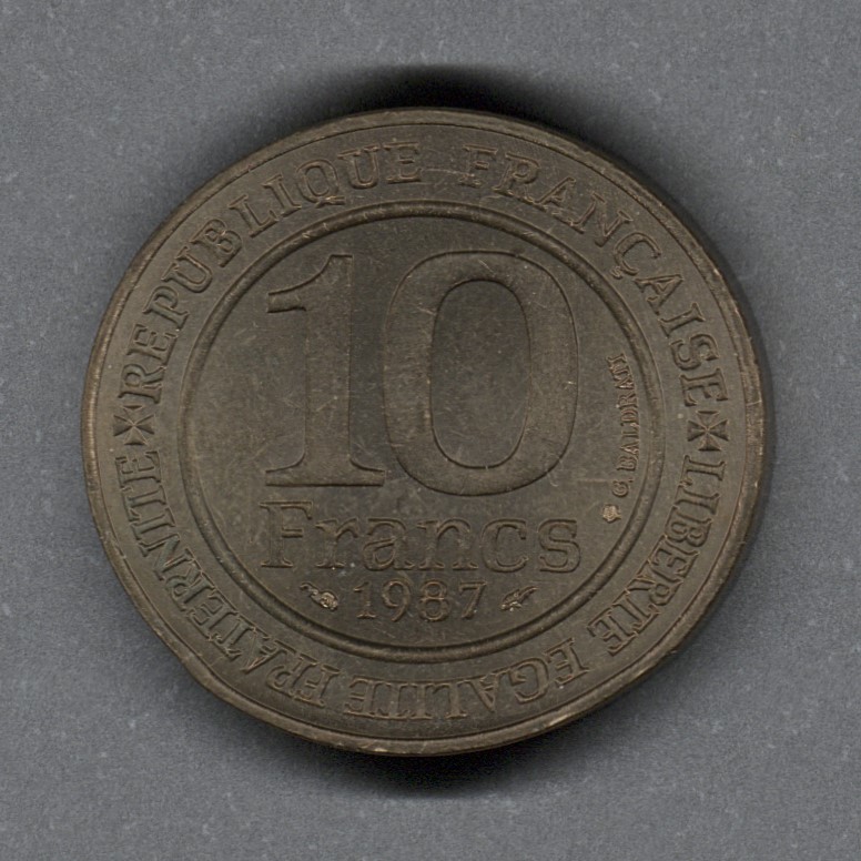 Moneda circulante conmemorativa de Francia. En anverso presenta denominación y fecha dentro de un círculo, y alrededor la leyenda "REPUBLIQUE FRANÇAISE+LIBERTE EGALITE FRATERNITE+". Al reverso figura coronada de pie en el centro, rosetas en el fondo. El grabador de ambas caras fue Gérard Baldrati. El diseño del canto es llano.
